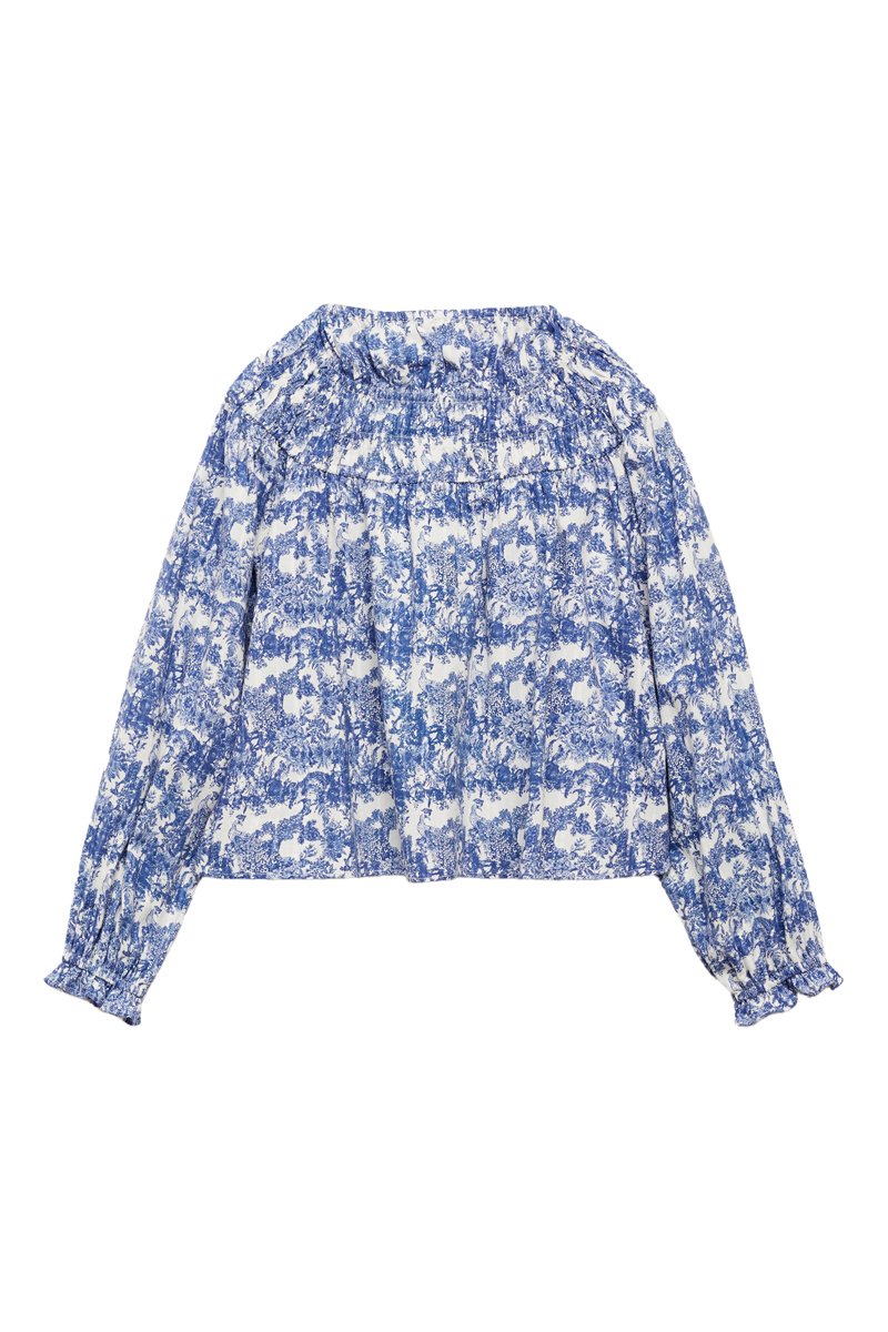 Blouse imprimée froncée - Bleu