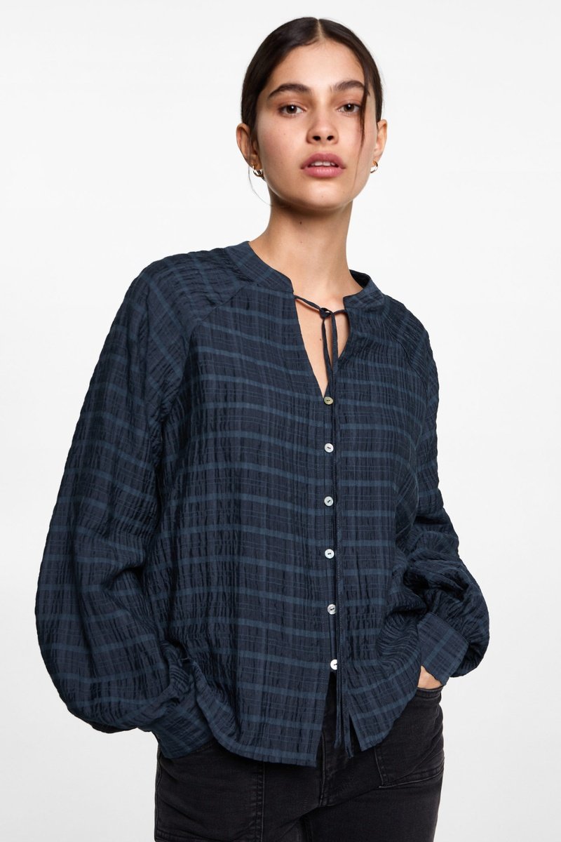 Blouse à carreaux avec un noeud - Bleu marine