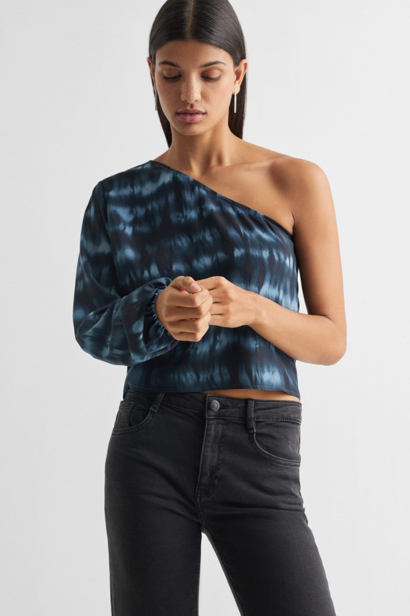 Blouse asymétrique imprimée - Bleu