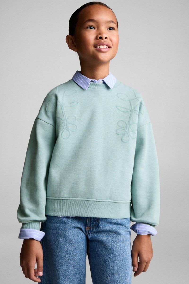 Sweat-shirt coton détails brodés - Vert d'eau
