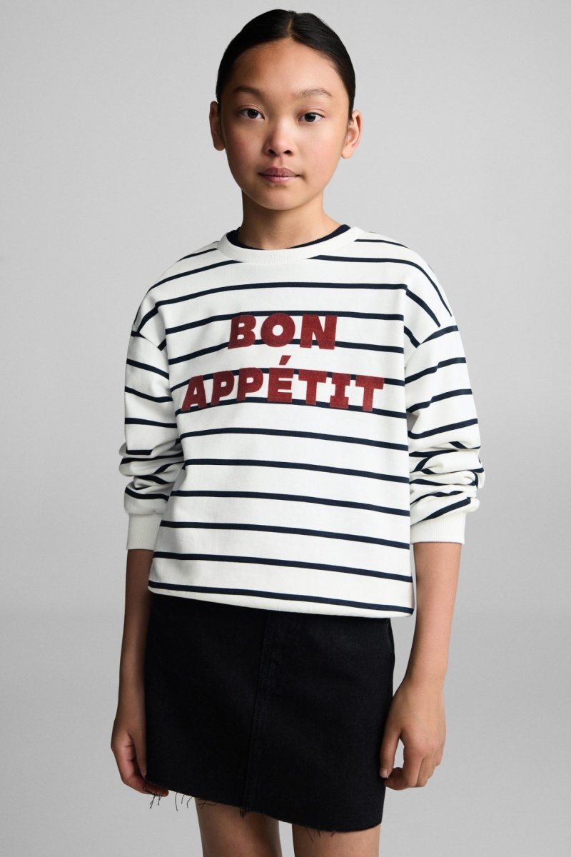 Sweat-shirt à rayures et message.