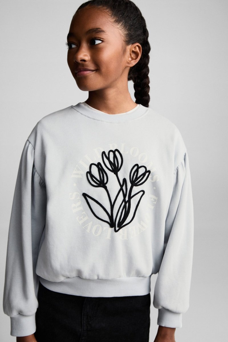 Sweat-shirt coton détails brodés - Bleu clair
