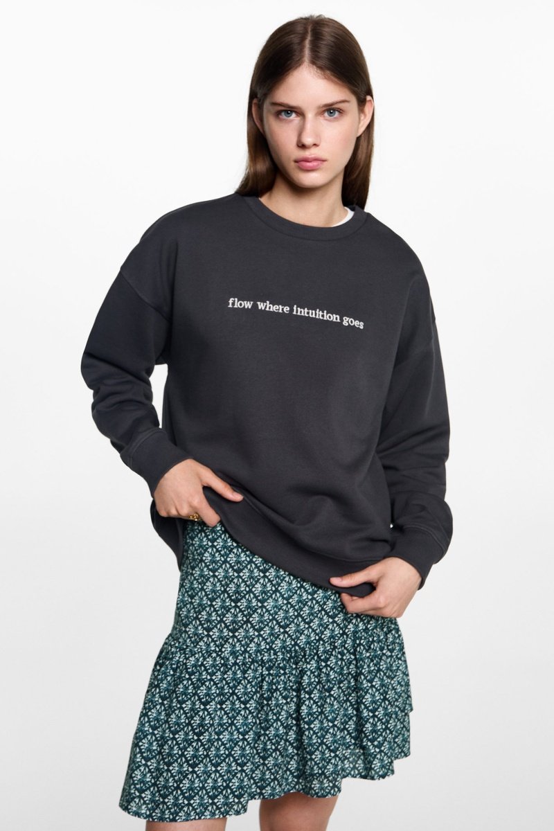 Sweat-shirt coton détails brodés - Anthracite