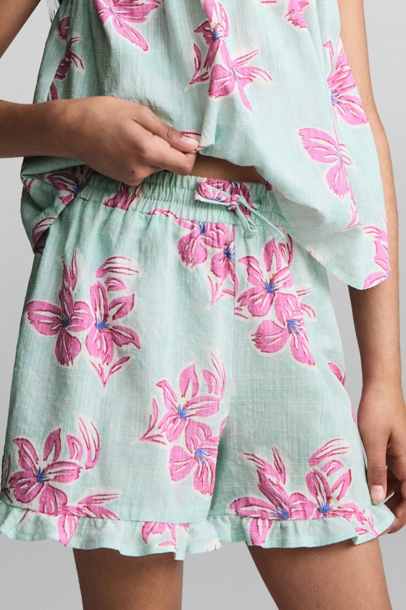 Short coton fleurs - Turquoise