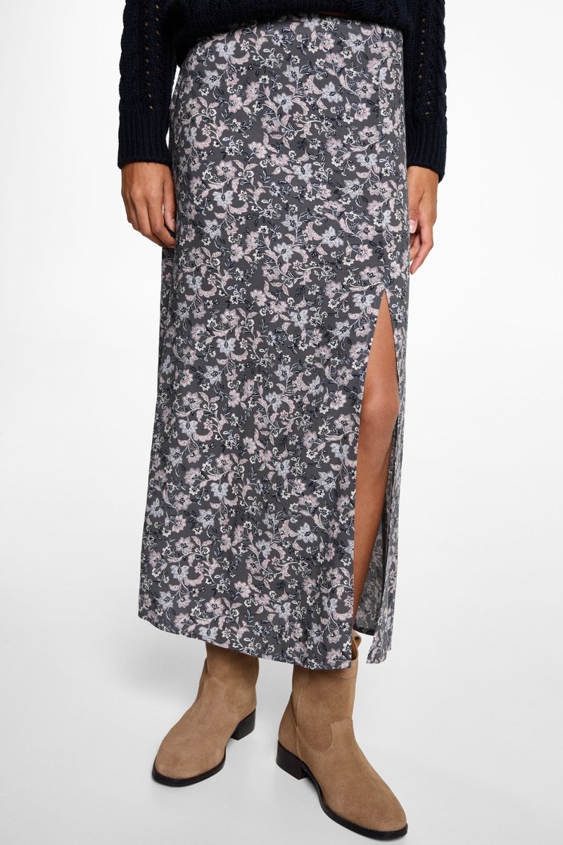 Jupe fendue fleurs.