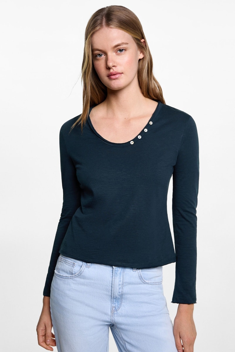 Col avec boutons décoratifs.