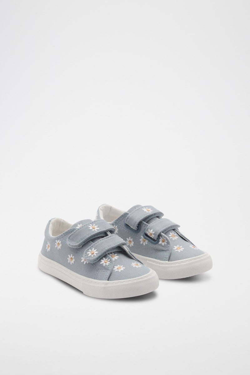 Tennis brodées à fleurs - Bleu clair