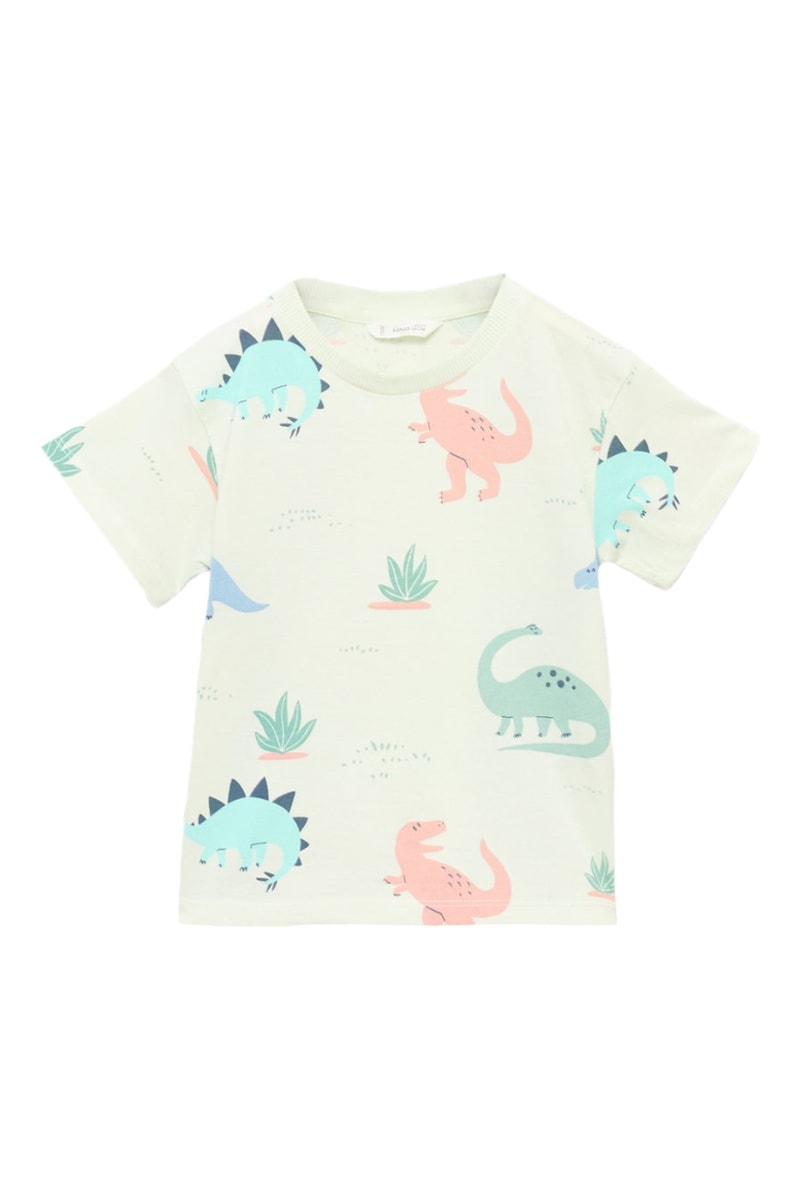 T-shirt coton dinosaure - Vert pastel