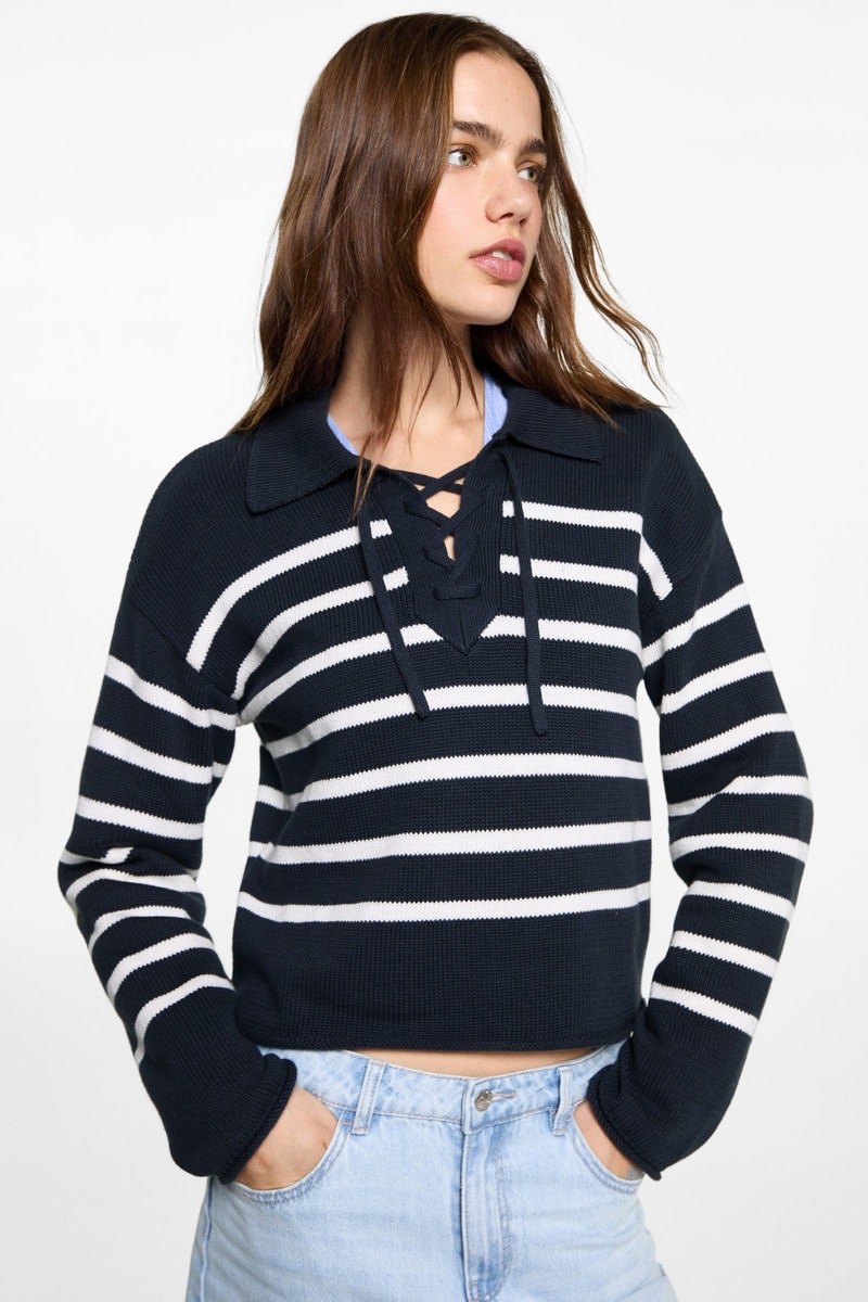 Pull-over rayures col polo.