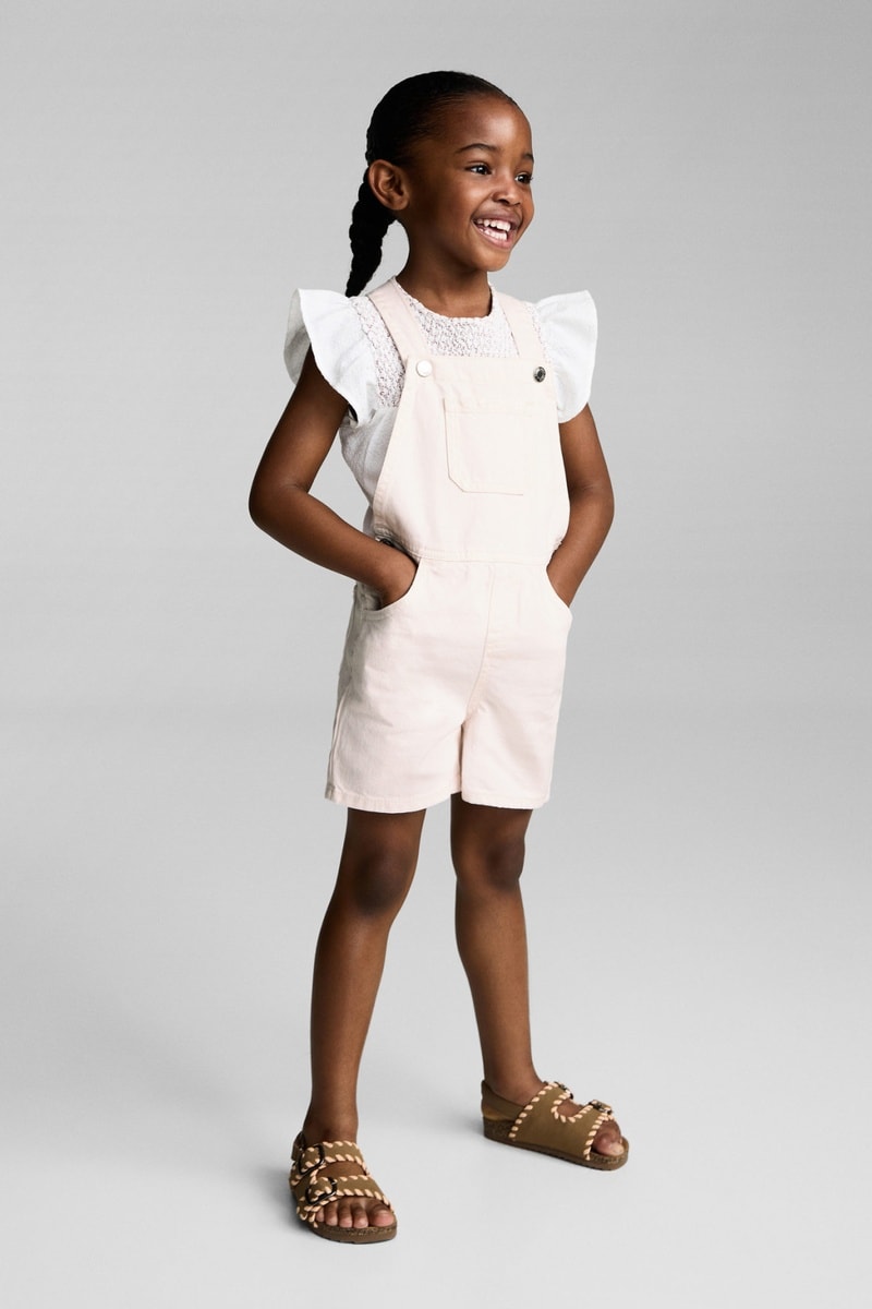 Salopette courte en jean - Rose pastel