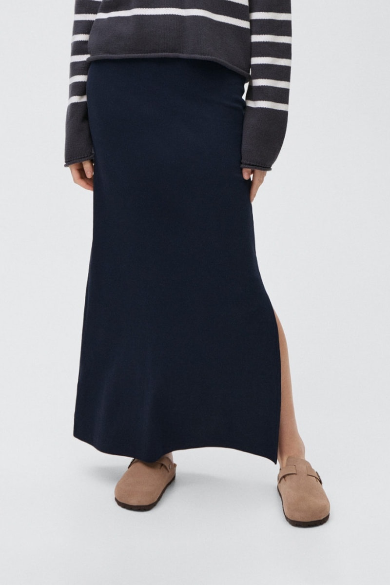 Jupe longue fente sur le côté.