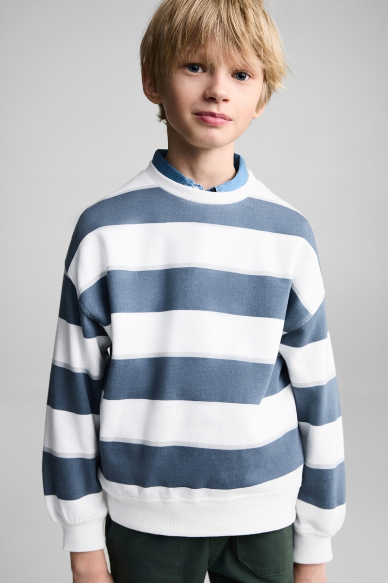 Sweat-shirt coton rayures - Bleu