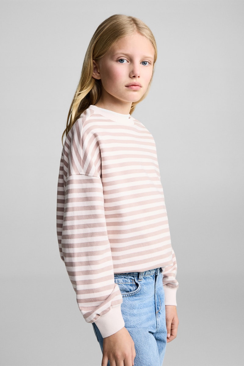 Sweat-shirt coton rayures - Rose