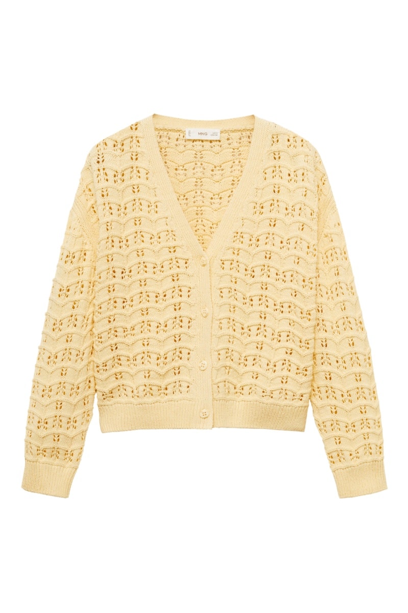 Cardigan maille ajourée - Jaune
