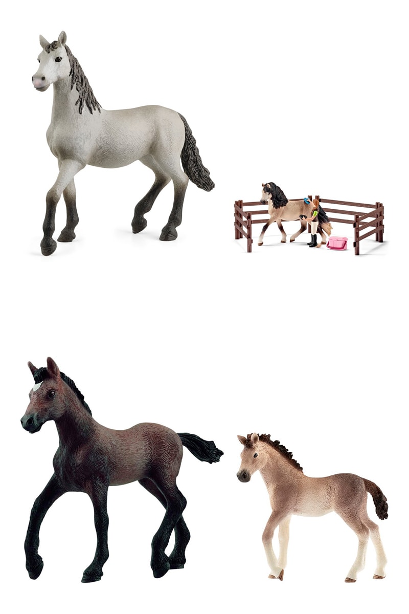 Le poulain pure race espagnole du Horse Club Schleich® est un cheval pommelé curieux de tout, au regard attentif et aux oreilles bien tendues. Dès leur naissance, les chevaux pure race espagnole sont gracieux comme des danseurs et sont donc souvent entraînés avec beaucoup d’amour et de patience pour l’art équestre de la Haute Ecole. Ils y apprennent des figures de dressage époustouflantes, comme les pirouettes et les airs reléves.