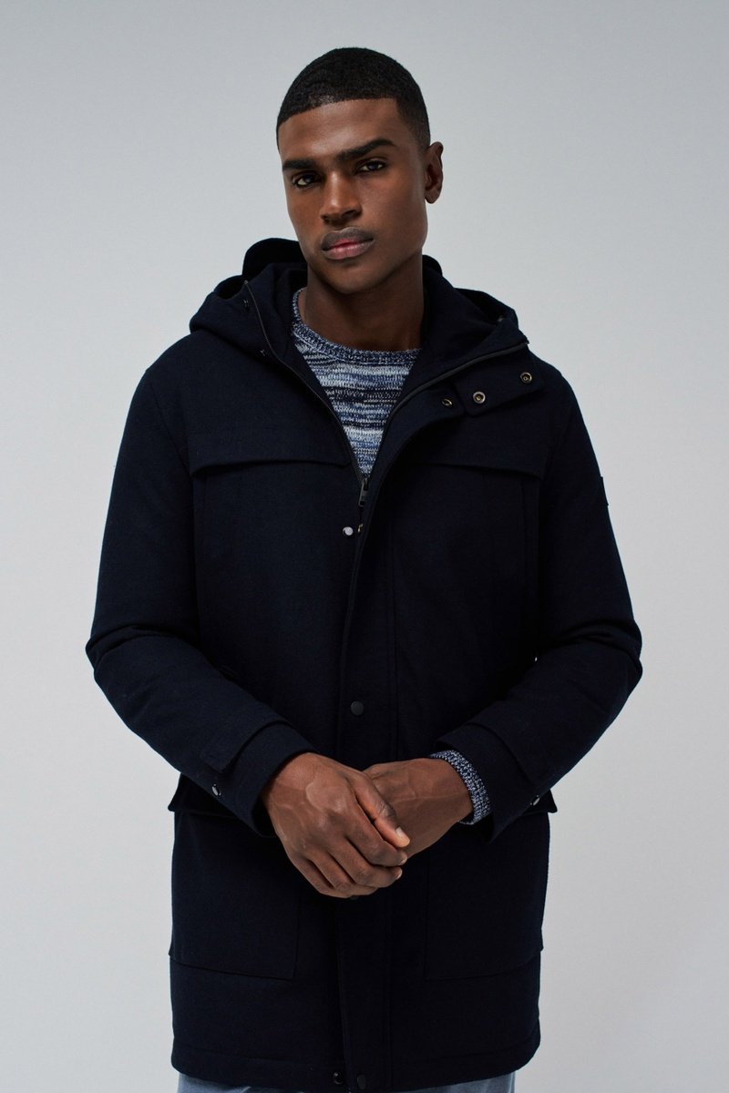 Parka regular en laine mélangée à capuche à manches longues.