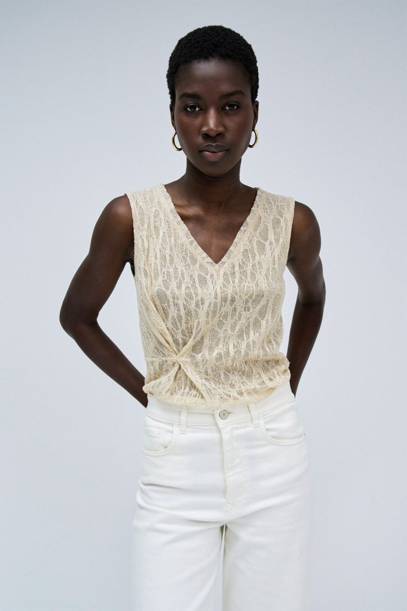 Top slim sans manches - Beige