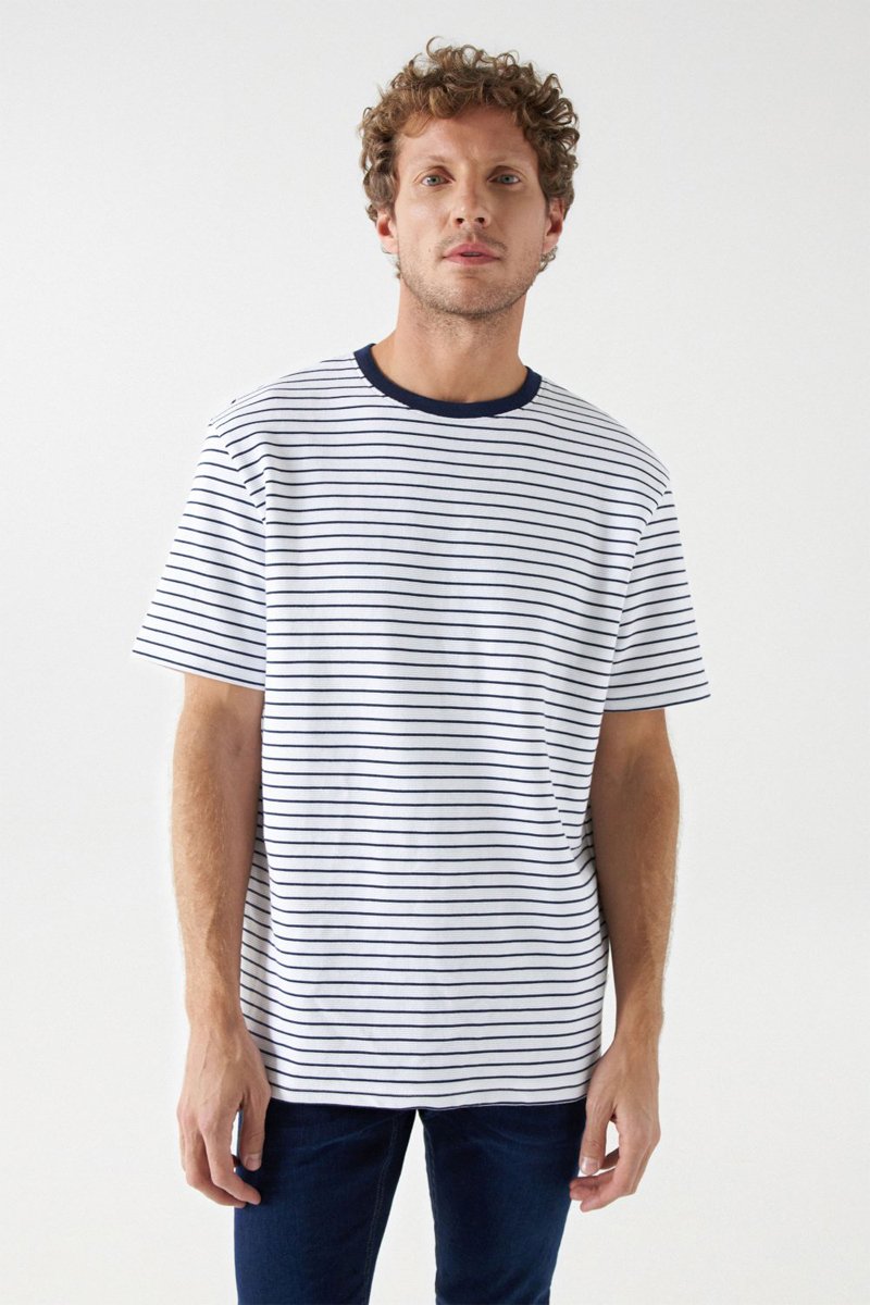 T-shirt regular - Blanc et bleu foncé