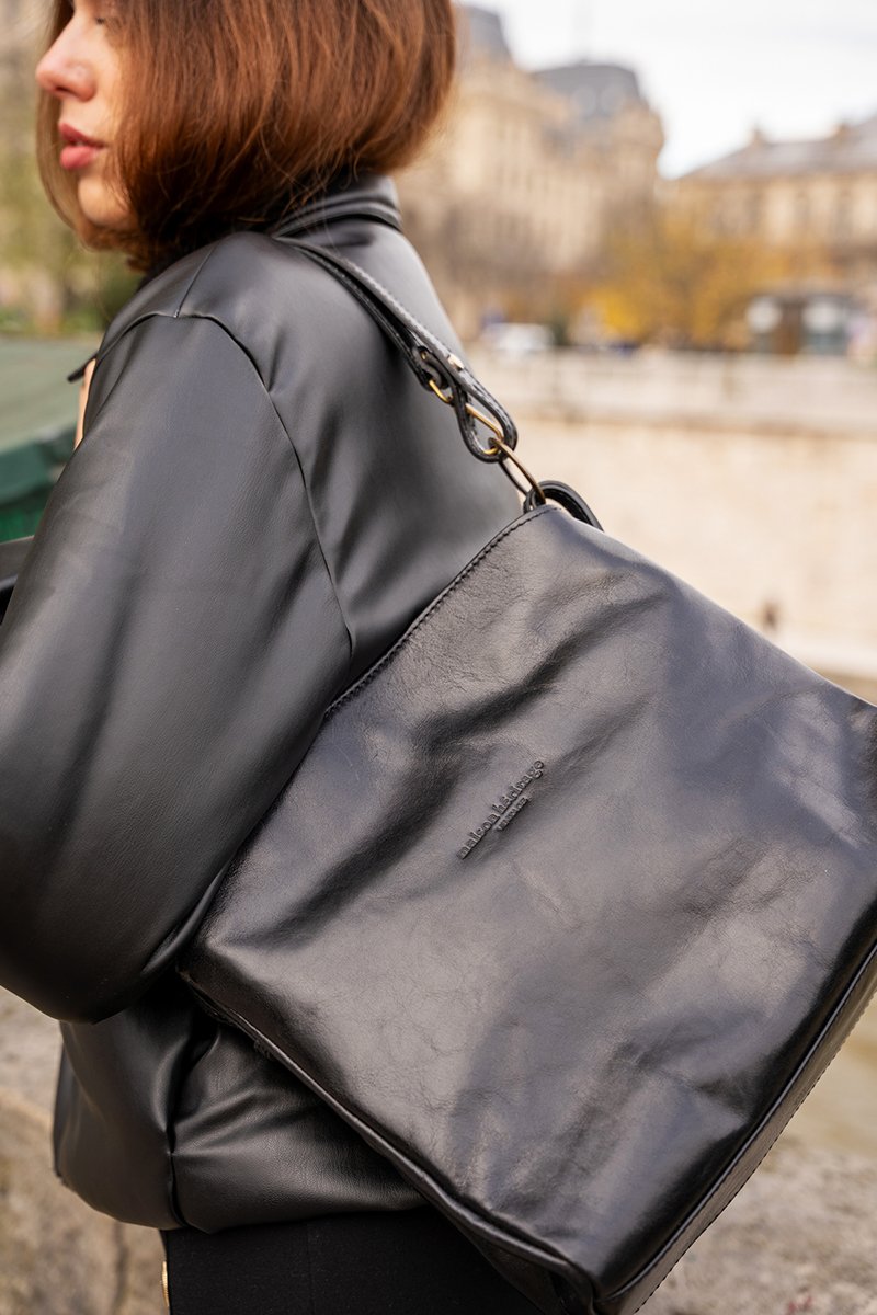 Sac porté épaule en cuir Malia - Noir