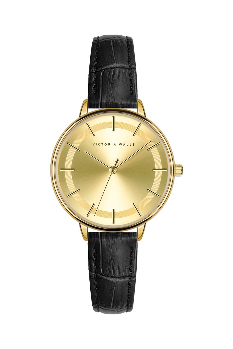 Montre à quartz en cuir - Noir et doré - Victoria Walls