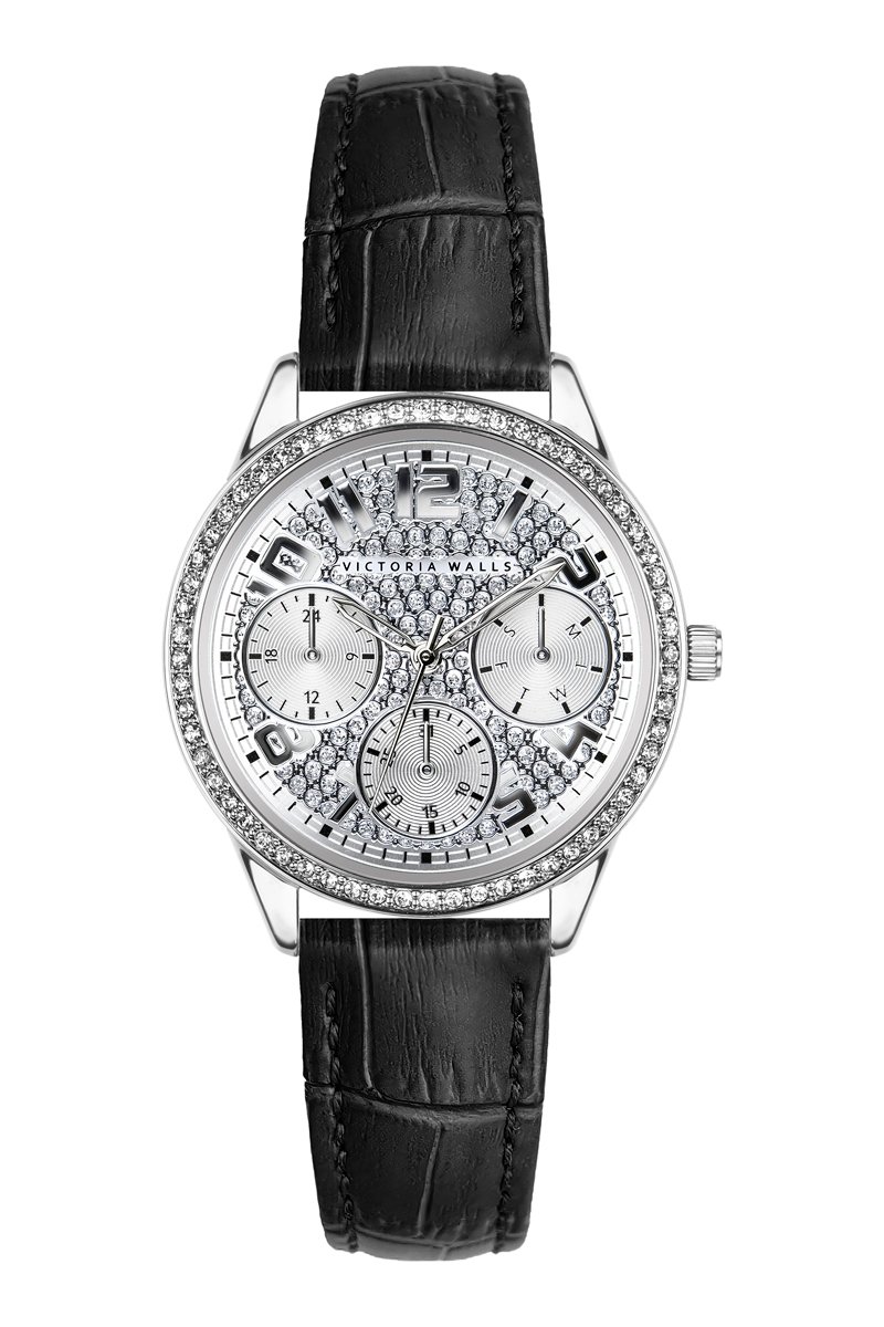 Montre à quartz en cuir - Noir et argenté - Victoria Walls