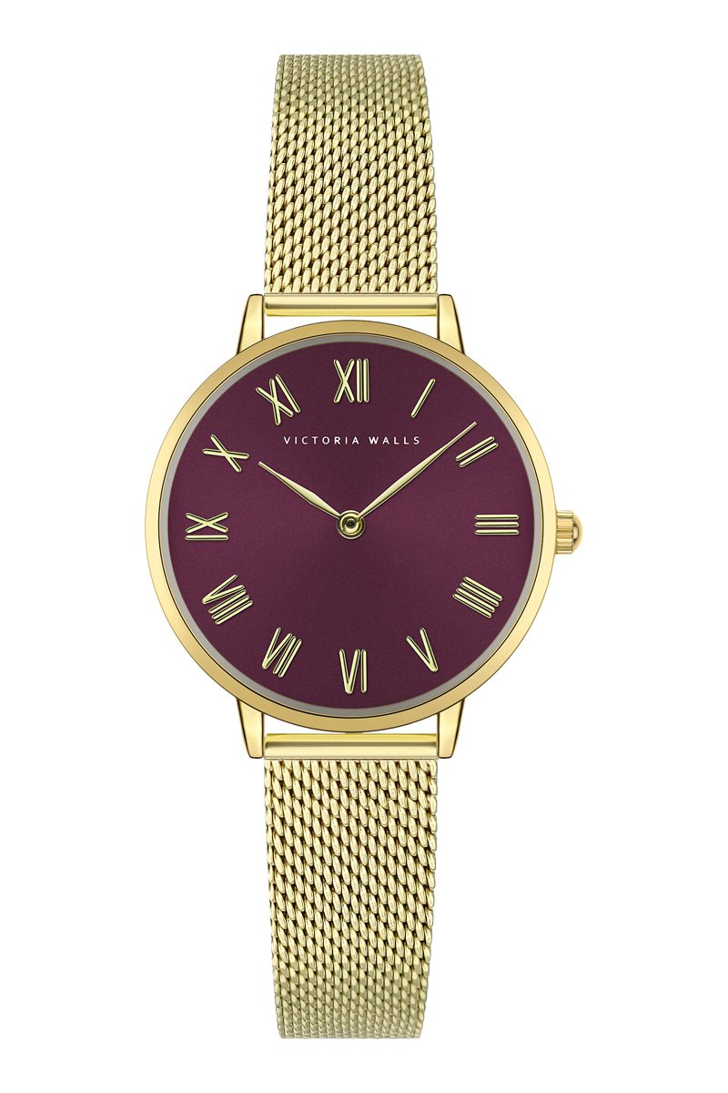 Montre à quartz en acier - Doré et bordeaux - Victoria Walls