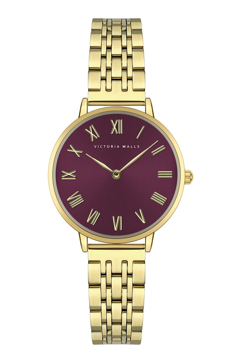 Montre à quartz en acier - Doré et bordeaux - Victoria Walls