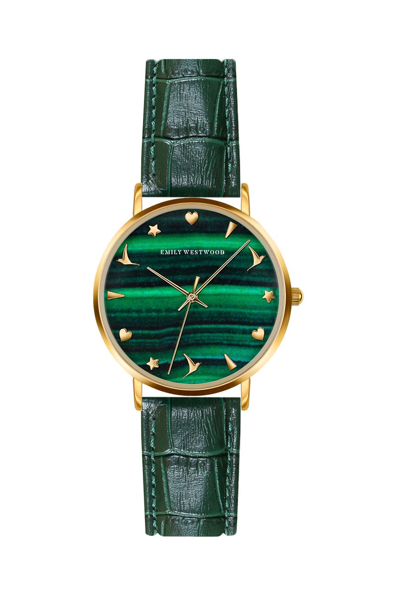 Montre à quartz en cuir - Vert et doré - Emily Westwood