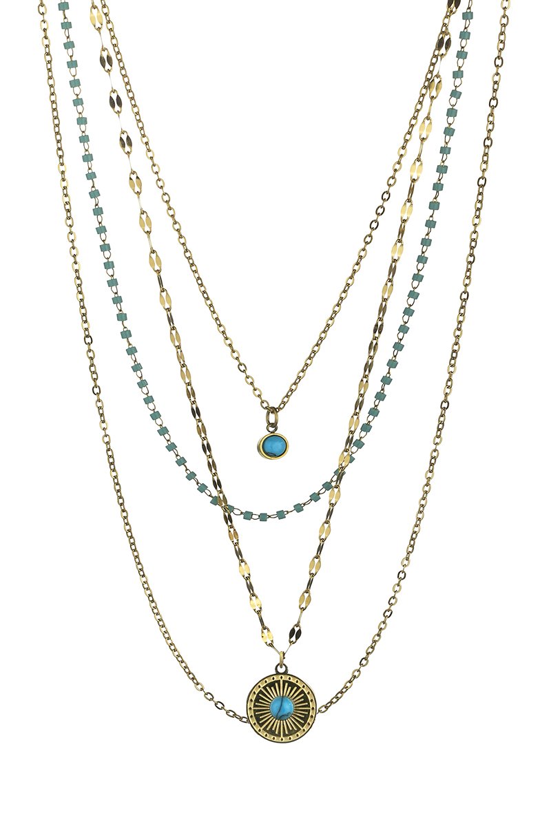 Collier quatre rang serti de turquoises et de cristaux.