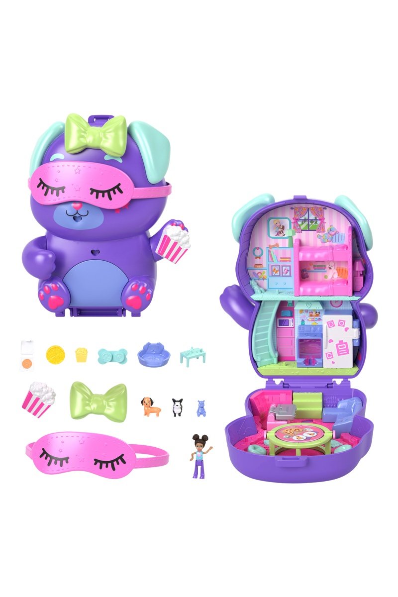 Le coffret s'ouvre pour révéler un univers de soirée pyjama avec des accessoires et des mini-figurines.
