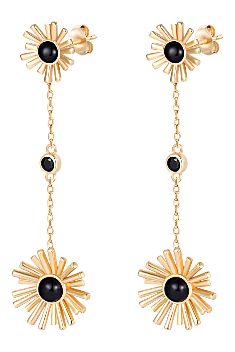 Boucles d'oreilles pendantes en argent plaqué or jaune serties de zirconiums.