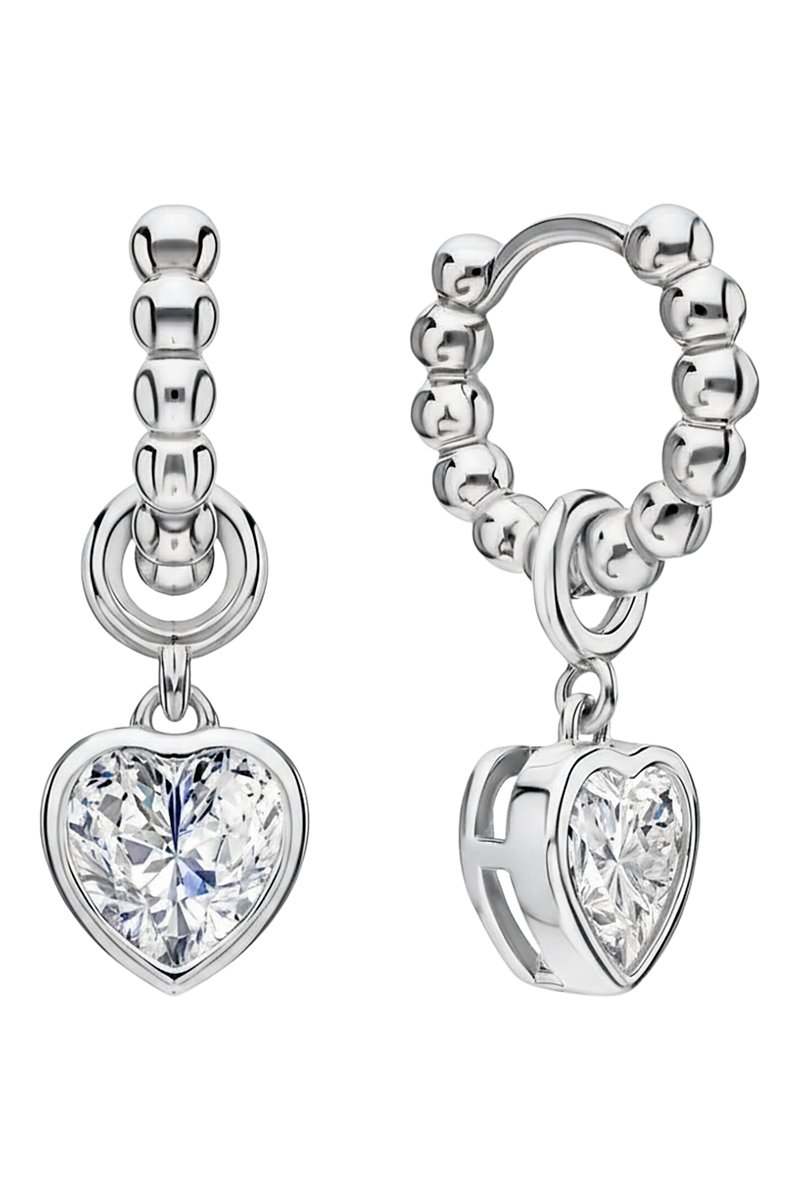 Créoles pendantes en argent serties de zirconiums.