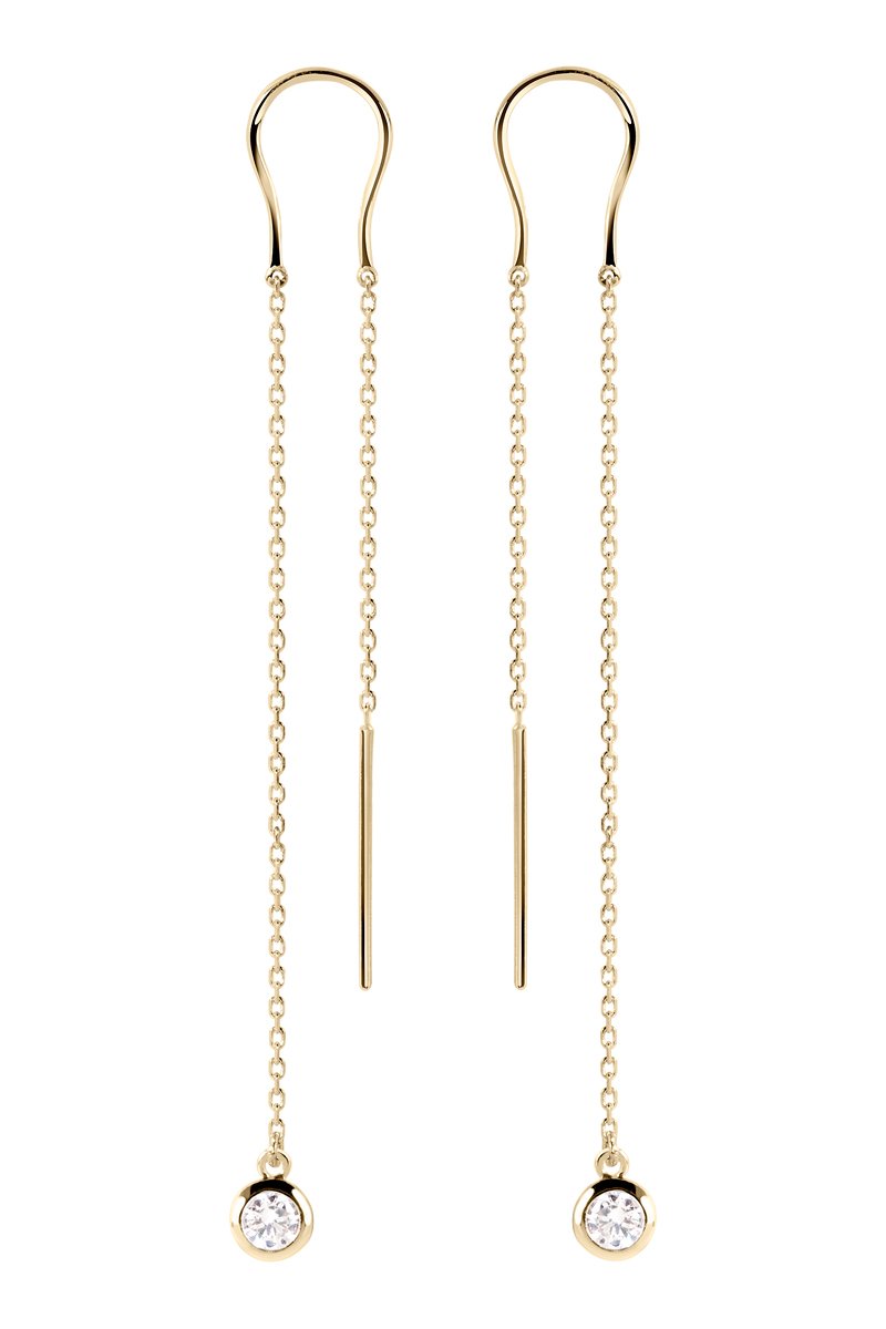 Boucles d'oreilles pendantes en argent plaqué or jaune serties de zirconiums.