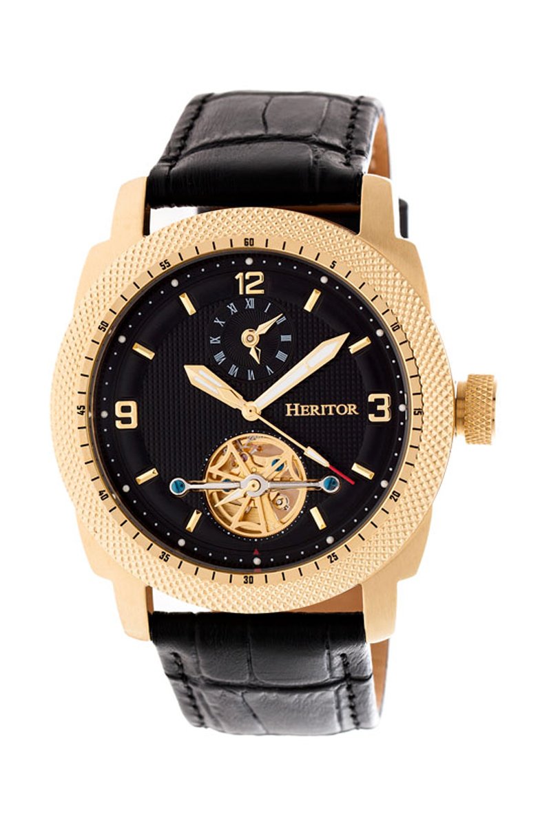Montre automatique en cuir Helmsley Heritor - Chronographe - Noir et doré