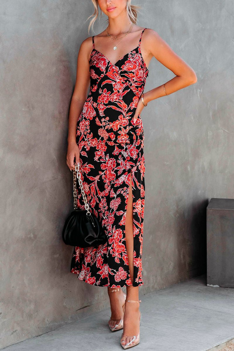 Robe midi - Noir et rouge