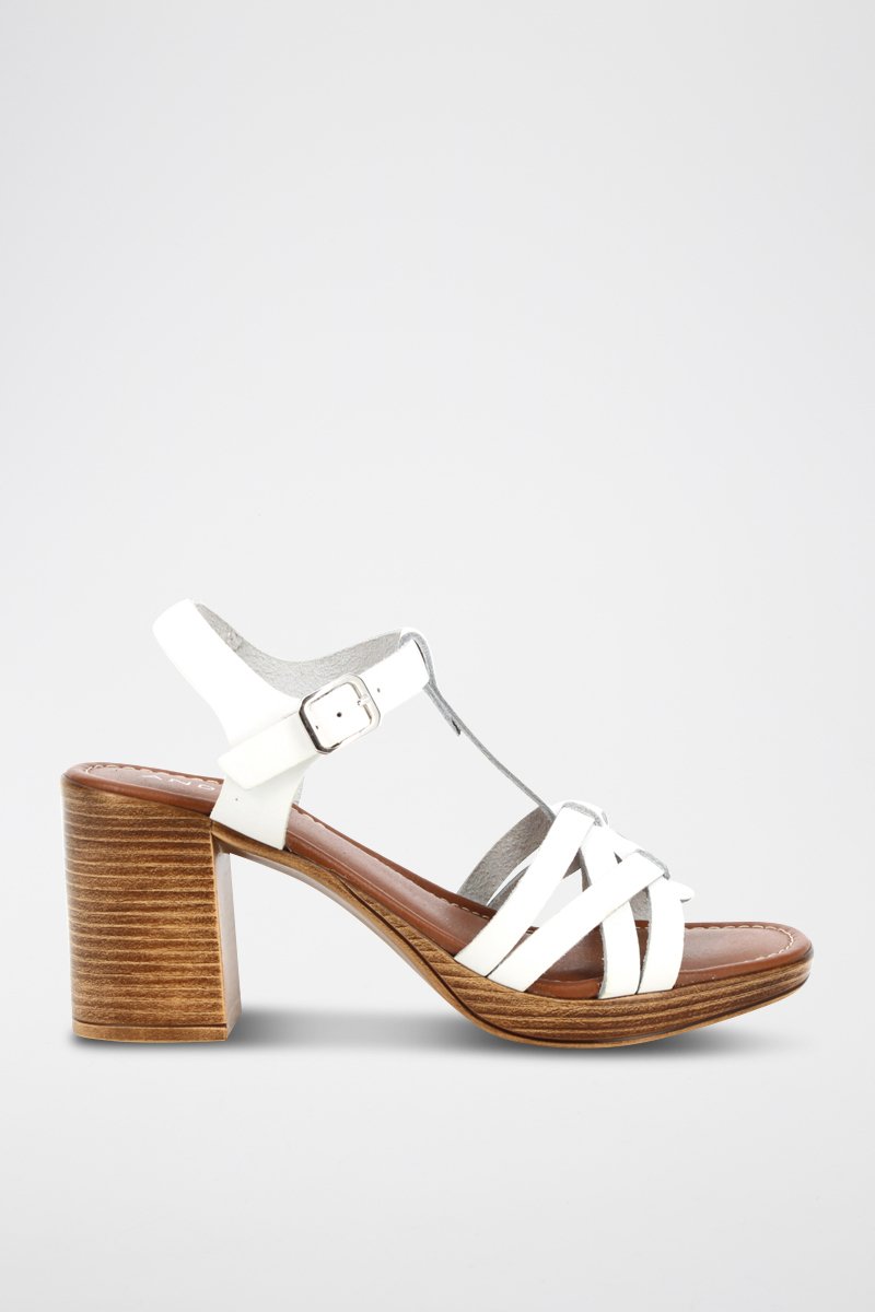 Sandales à talons en cuir.
