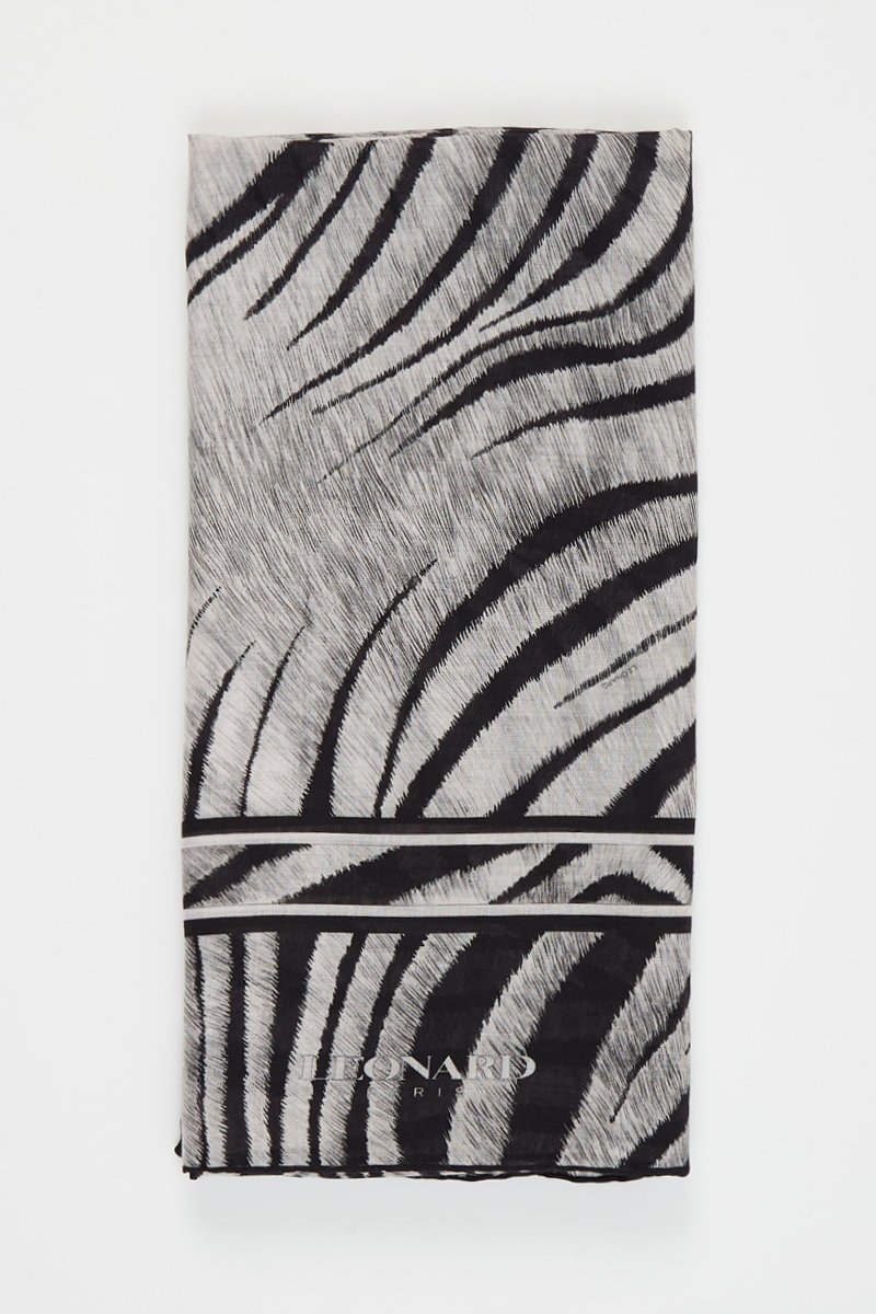 Foulard en cachemire et soie Kitty - Gris clair et noir