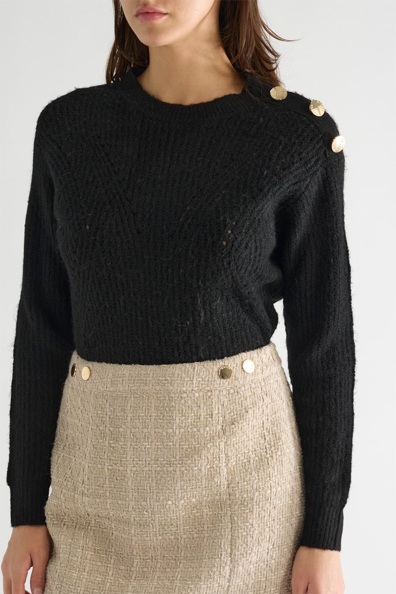 Boutons décoratifs à l’épaule gauche.