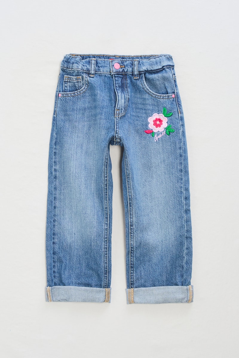 Motifs fleuris et logo brodés devant.