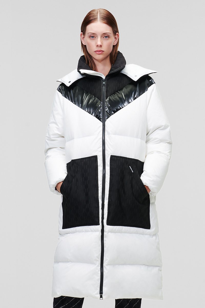 Doudoune longue à capuche.