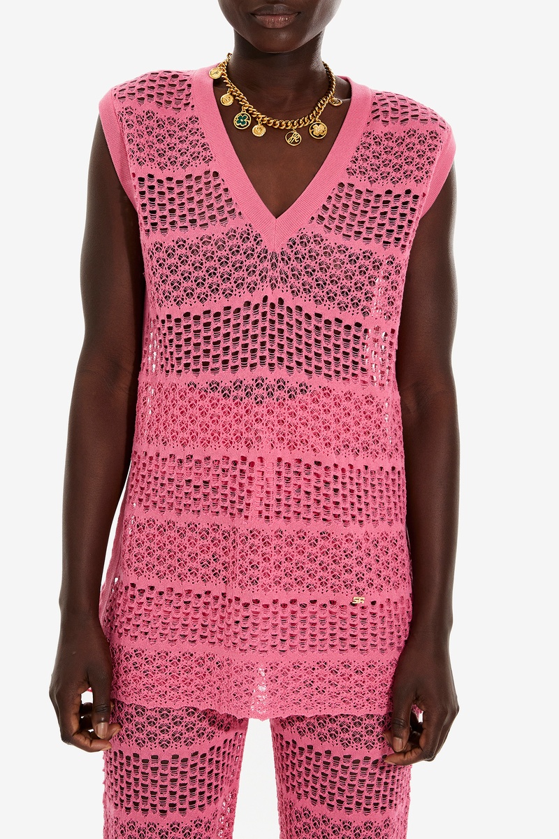 Débardeur en dentelle ajourée.