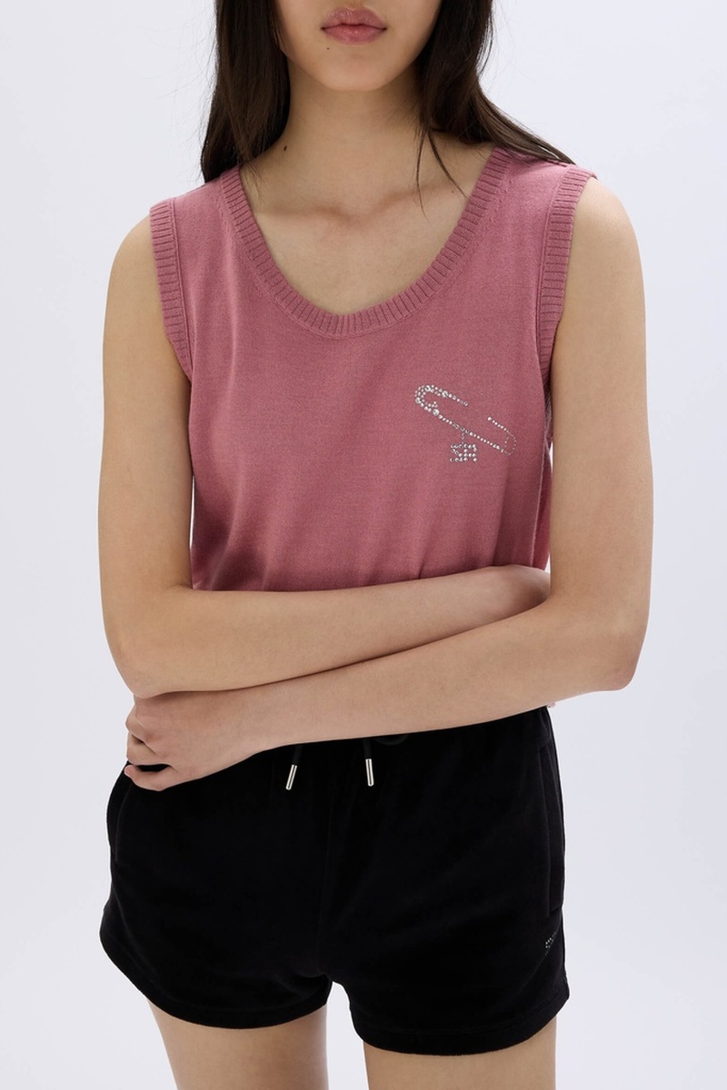 Pull sans manches en mérinos et laine - Rose