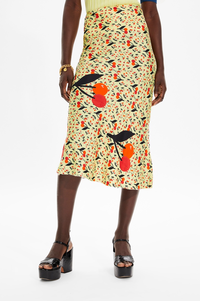Jupe midi en soie - Jaune