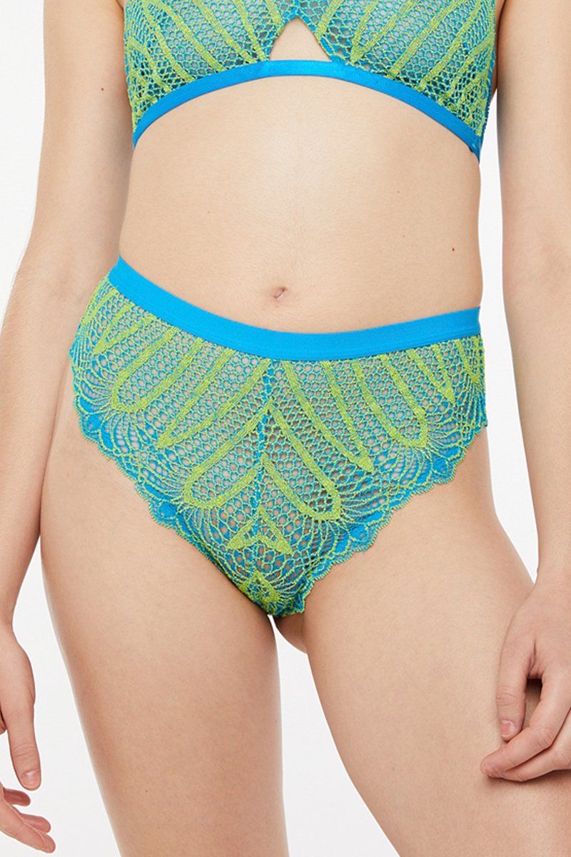 Tanga taille haute Stranded In Lace - Turquoise