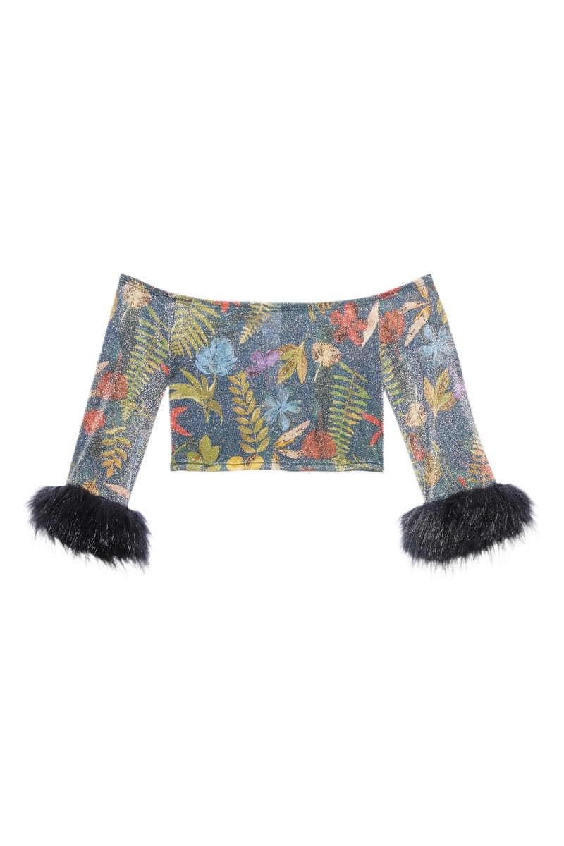 Manches 3/4 avec empiècements en fourrure synthétique.
