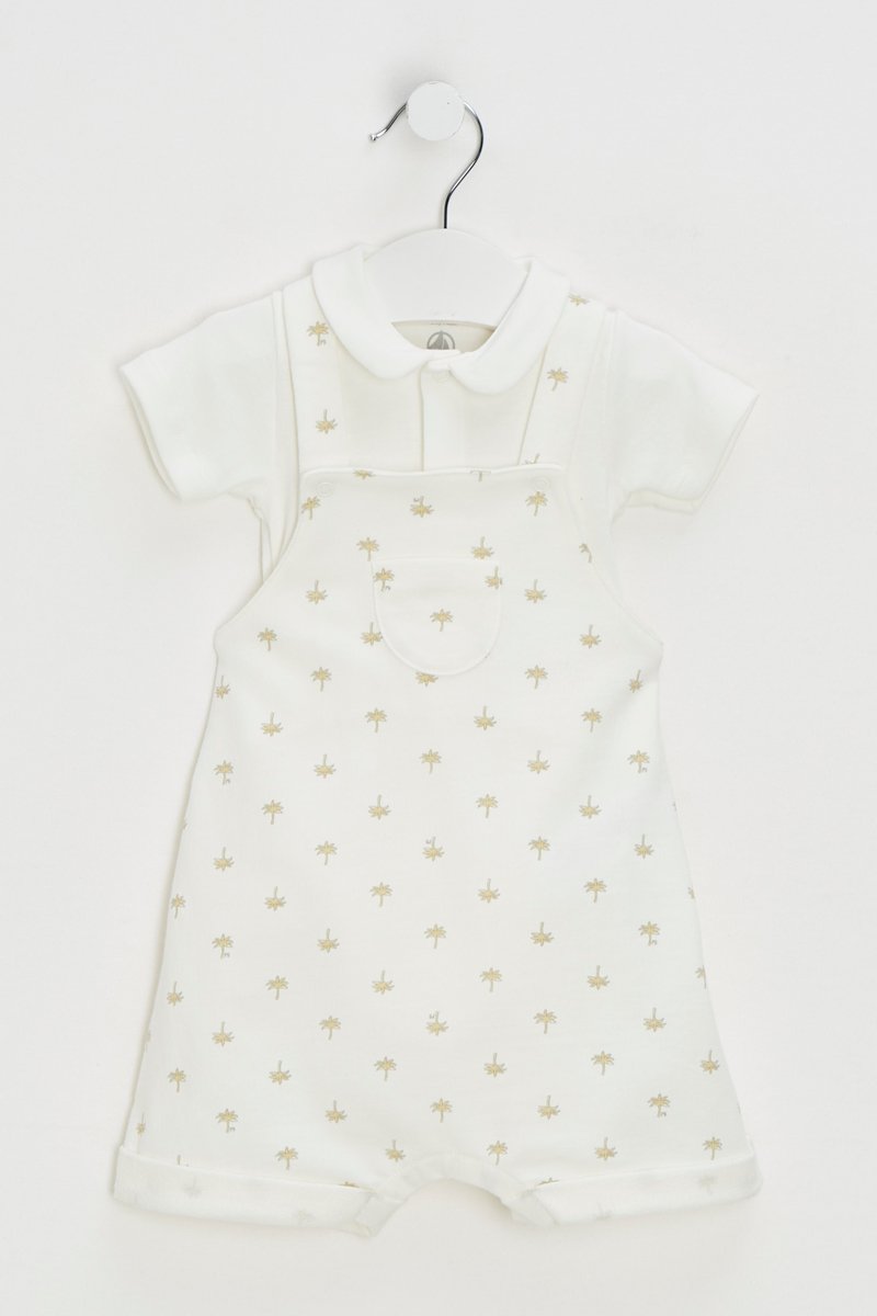 Body et salopette - Blanc et marron clair