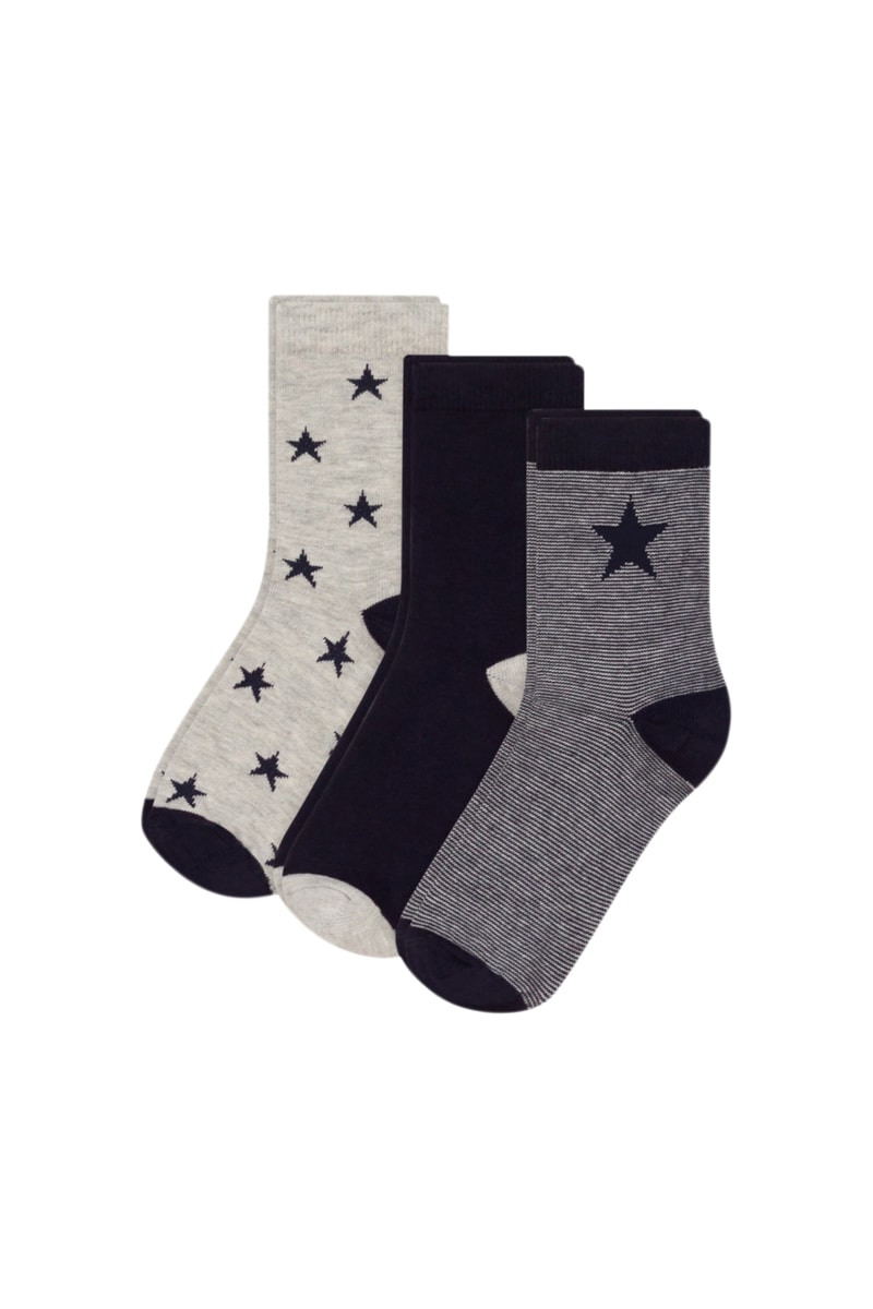 3 paires de chaussettes dont 1 à motifs étoiles et 1 à motifs à rayures.