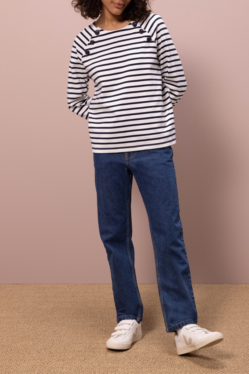 T-shirt à manches longues. - Blanc et bleu marine