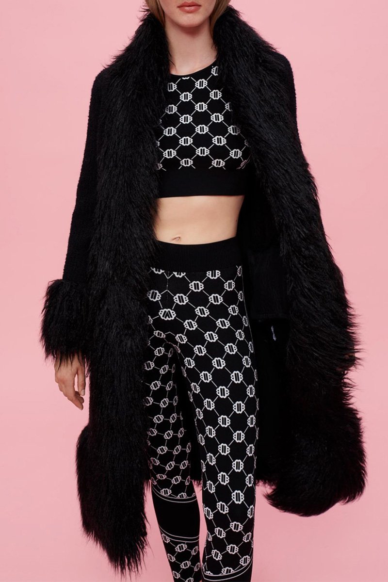 Fourrure synthétique à l’encolure, sur les manches, devant et à la base.