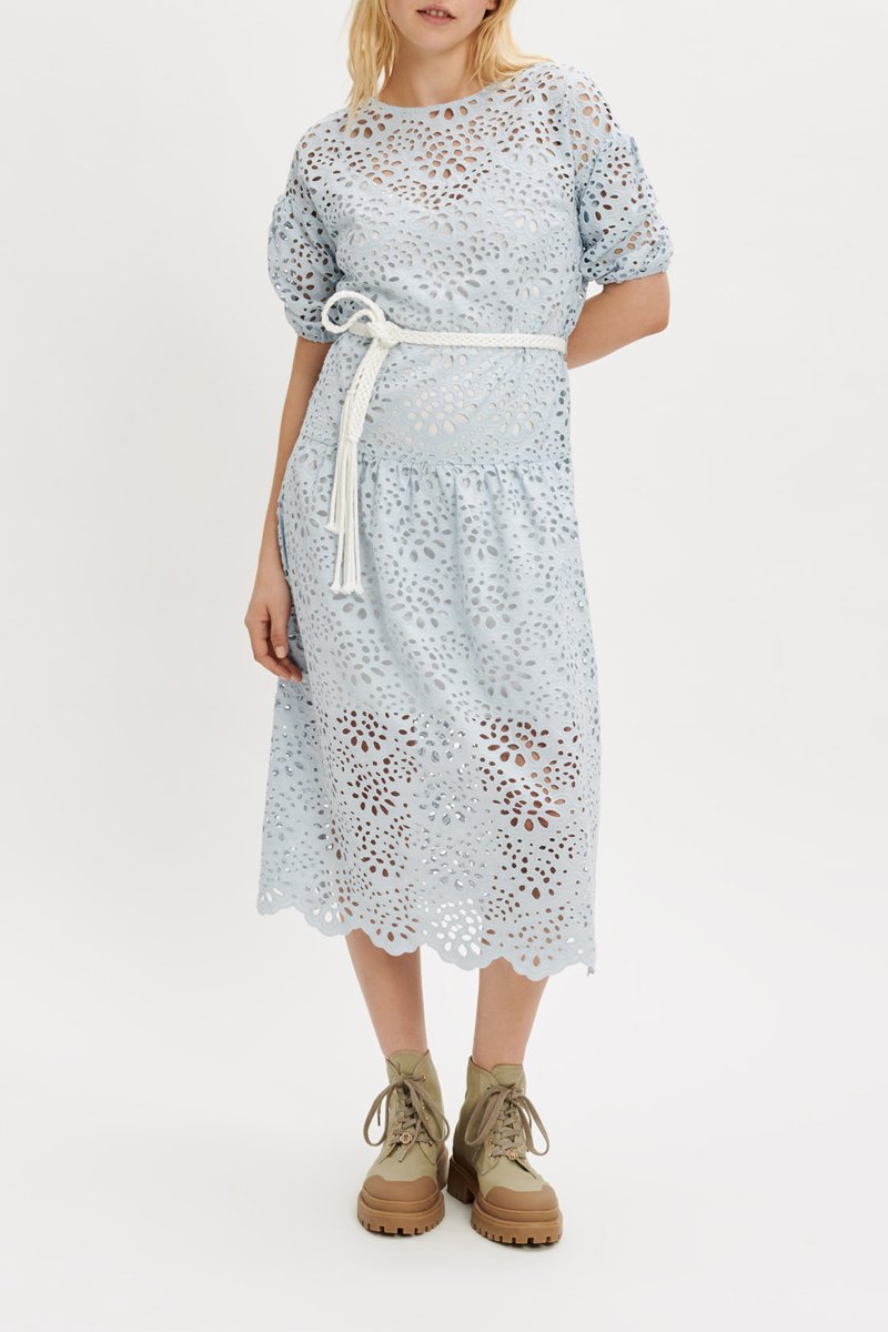 Robe midi en broderie anglaise - Ciel